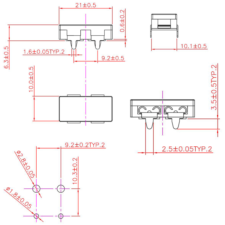 Drawing of SL-25 Standard Blade Fuse Holder PCB Mounting